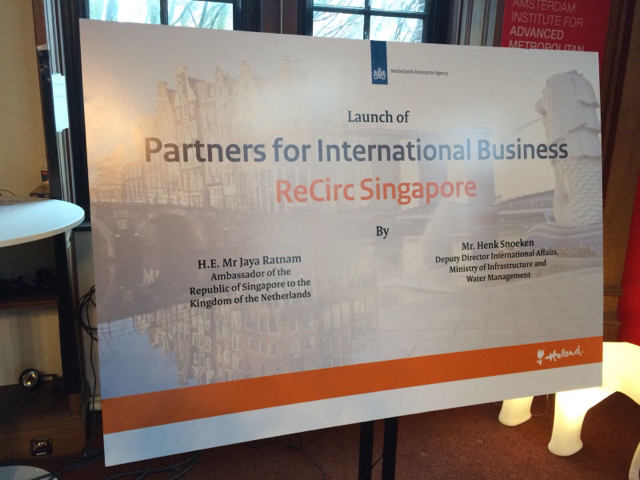 On 15 December 2017, Jaya Ratnam, Ambassador of Singapore, and Henk Snoeken, Deputy Director of International Affairs of the Ministry of Infrastructure and Water Management witnessed the signing ceremony of the Partners for International Business (PIB) Resource Recovery in the context of Circular Economy Singapore (ReCirc). Thirteen partners signed the covenant. The covenant connects the partners in the exploration and realization of circular solutions in the field of sludge and waste processing and resource recovery solutions, both in Singapore and the Netherlands.